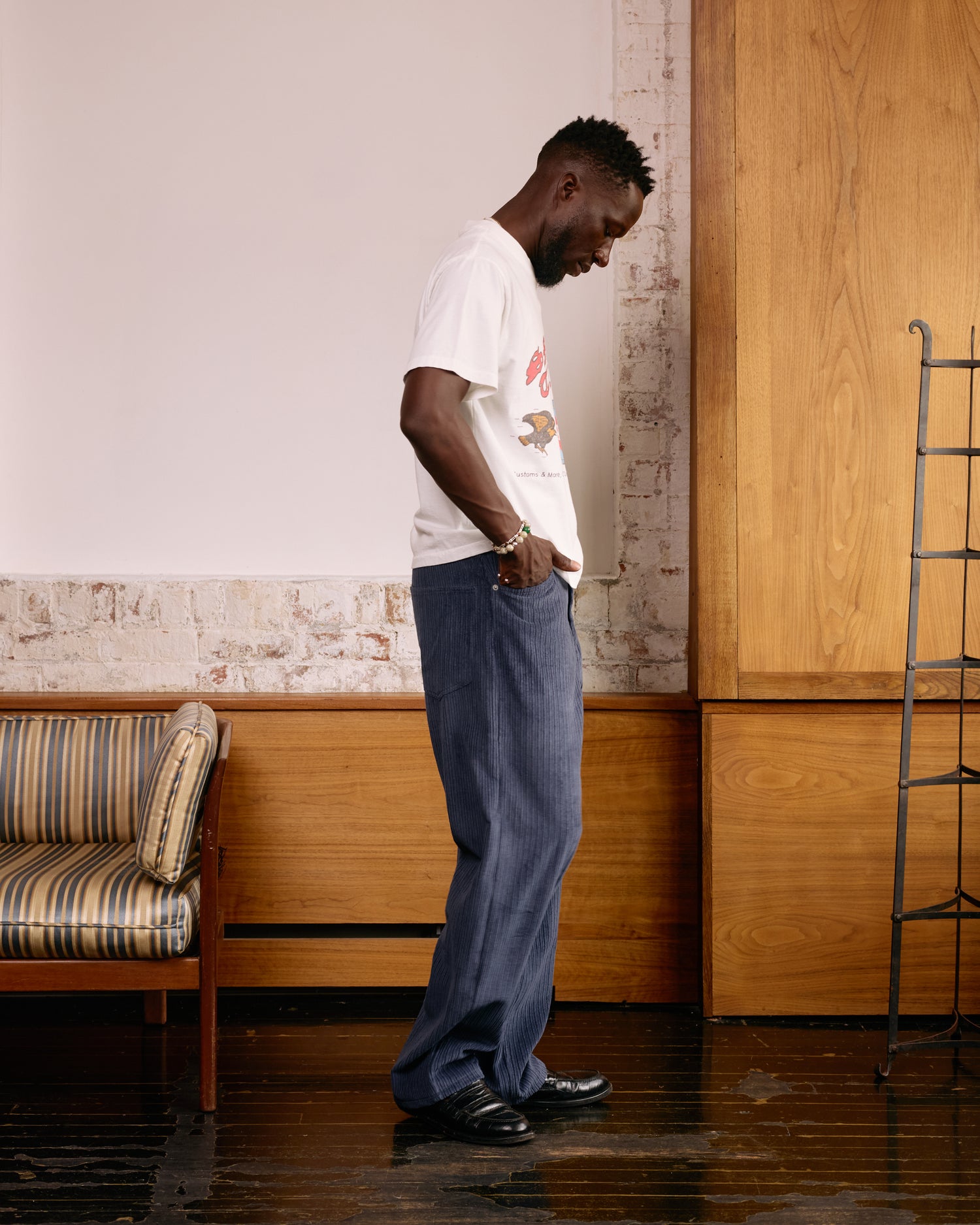 Our t-shirt is lightweight and very soft with a gently boxy fit. These shirts are pre-washed, and this round is running slightly small, especially in the length, so we recommend sizing up one size from what you would normally wear if you want our typical roomy fit.