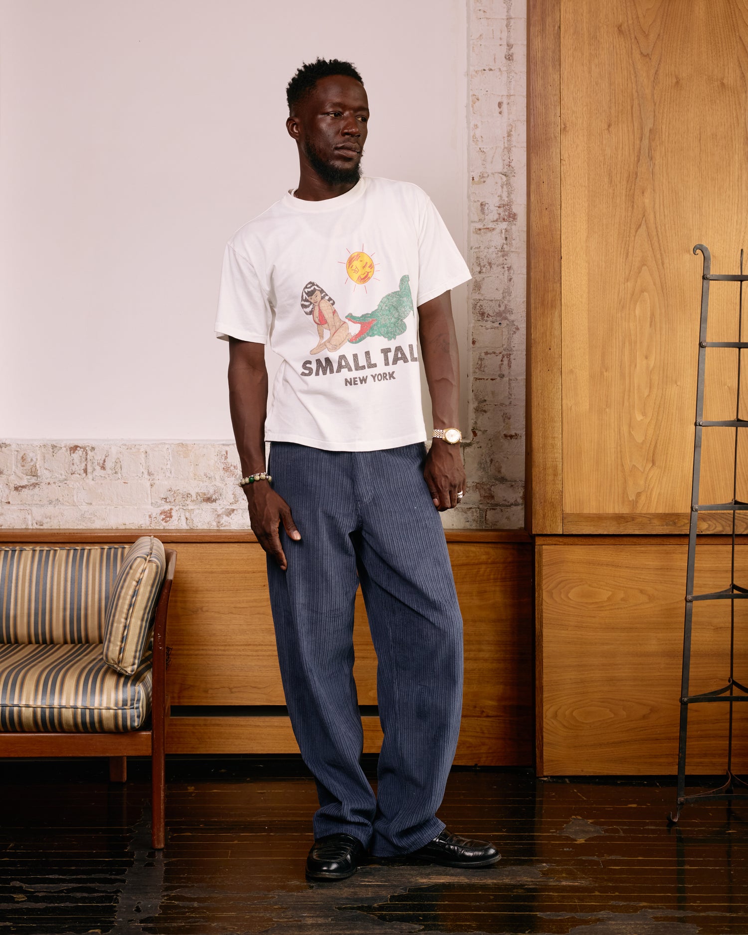 Our t-shirt is lightweight and very soft with a gently boxy fit. These shirts are pre-washed, and this round is running slightly small, especially in the length, so we recommend sizing up one size from what you would normally wear if you want our typical roomy fit.